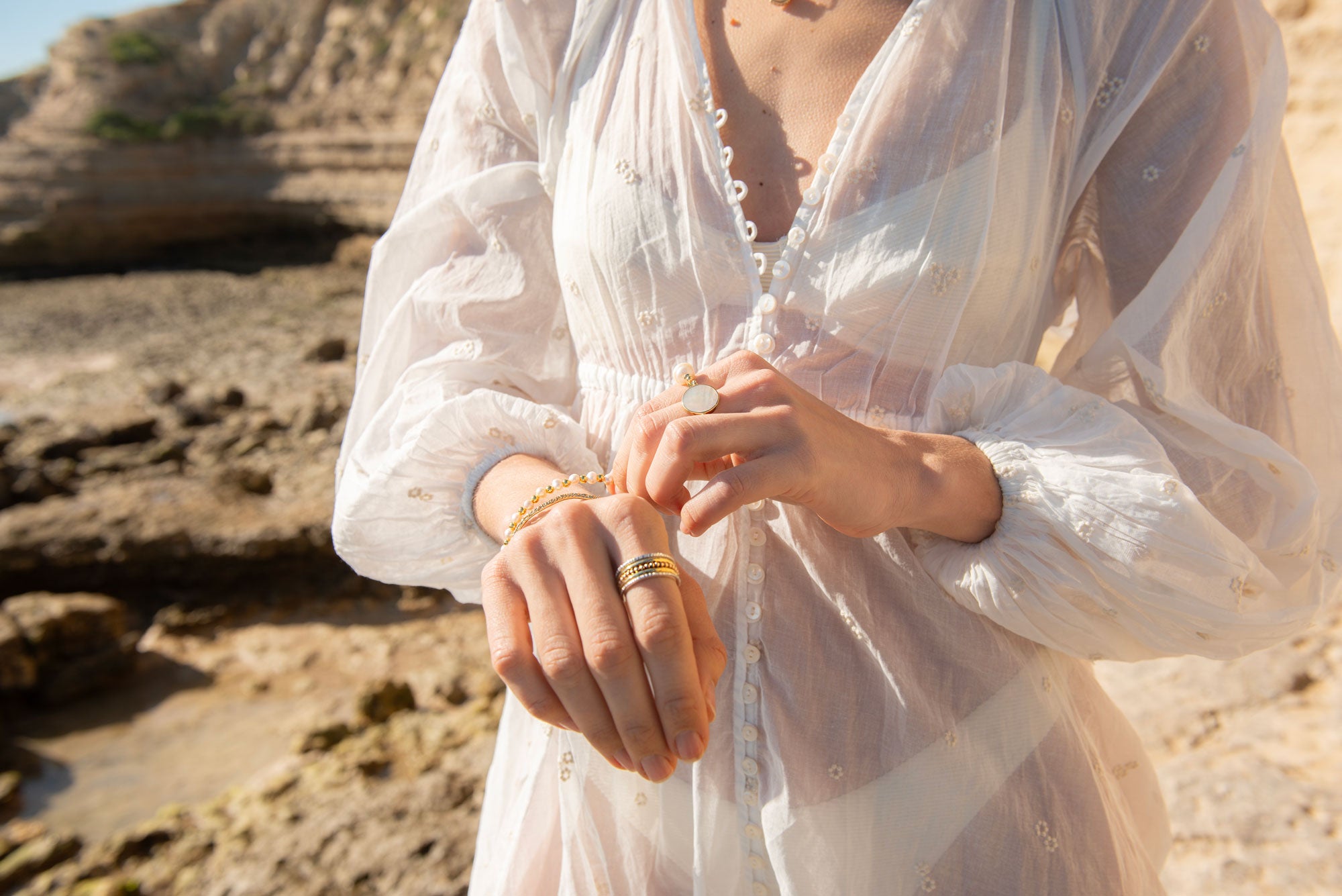 Calm blue ocean spinning ring